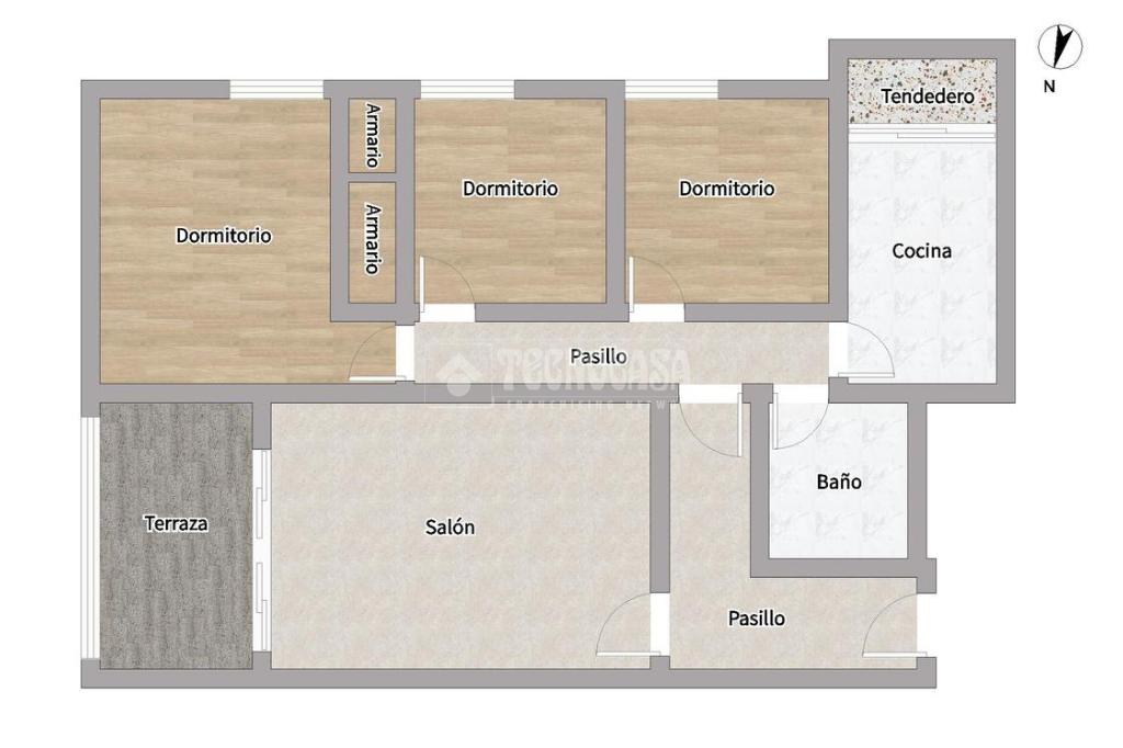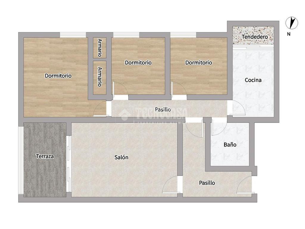La vivienda dispone de 3 amplios y cómodos dormitorios, un acogedor salón-comedor independiente con una amplia terraza, cocina independiente con terraza-tendedero y un baño completo.